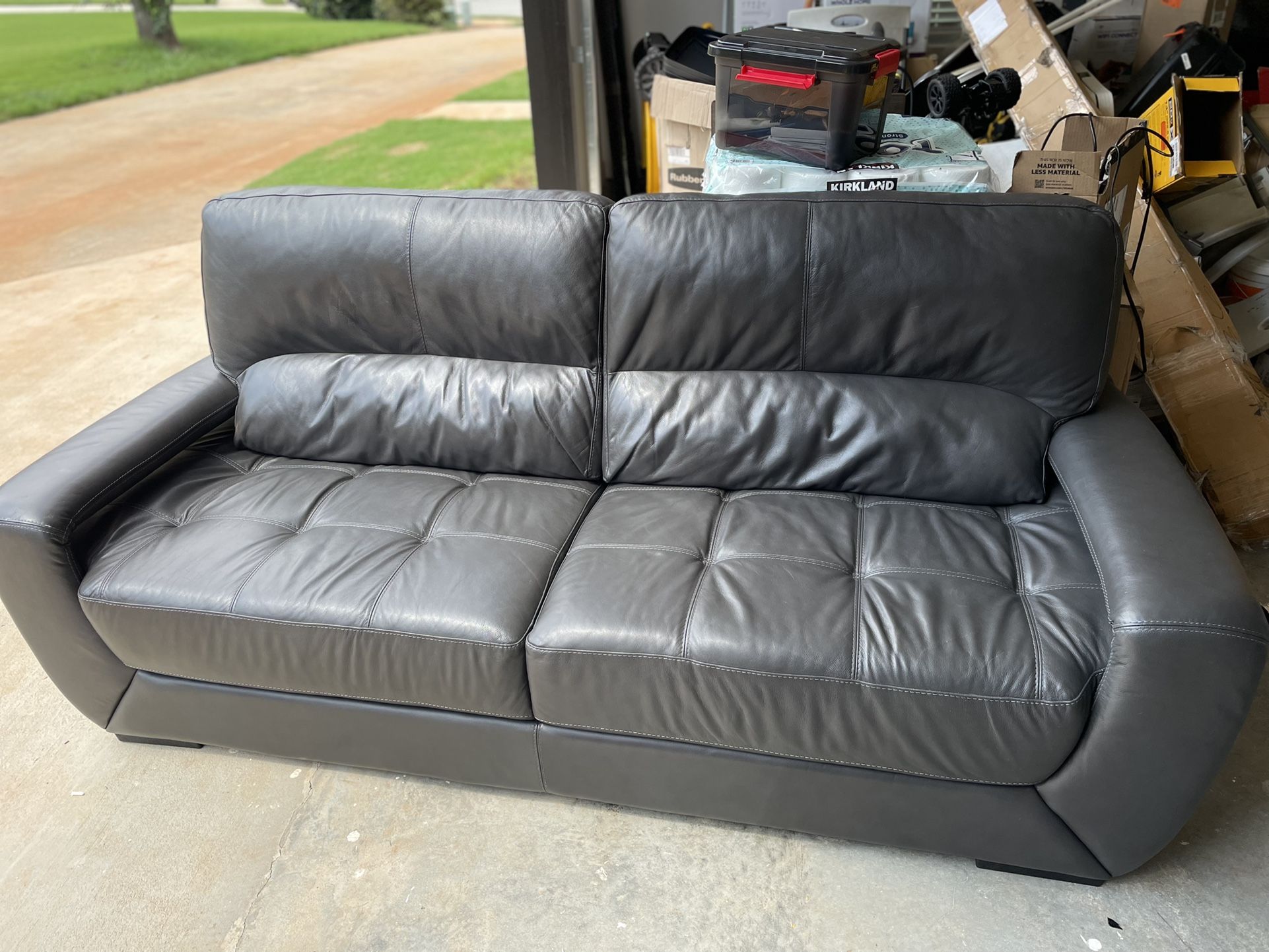 Gray Leather Sofa