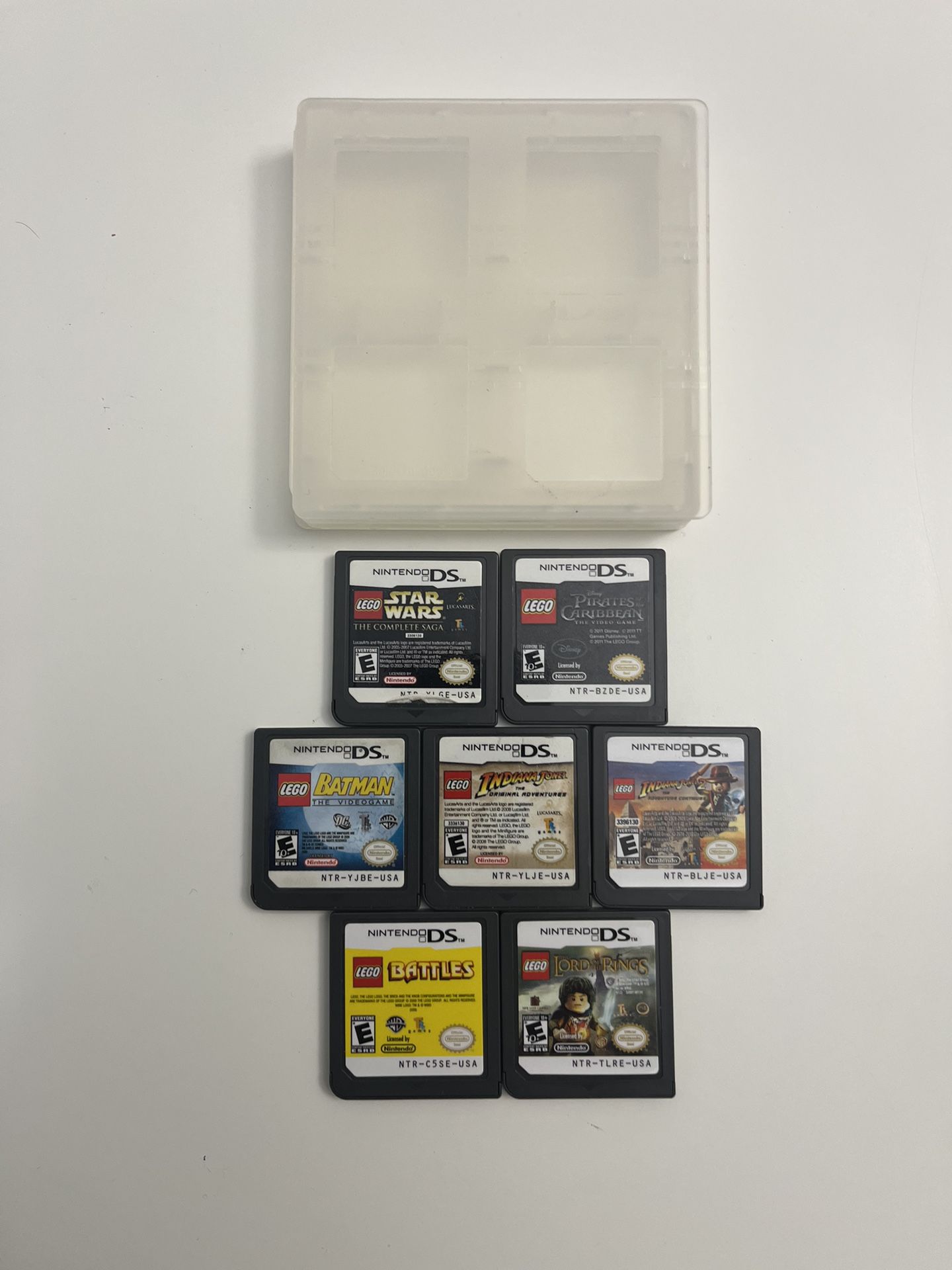 For sale are 7 great Lego games for the ds 1. Lego Batman 2. Lego Star Wars complete 3. Lego Indiana jones 1 4. Lego Indiana jones 2 5. Lego lord of the rings 6. Lego pirates of Caribbean 7. Lego battles All are original cartridges Works on Ds lite, Dsi, 3ds xl, 2ds Price firm. Cash and local pickup only