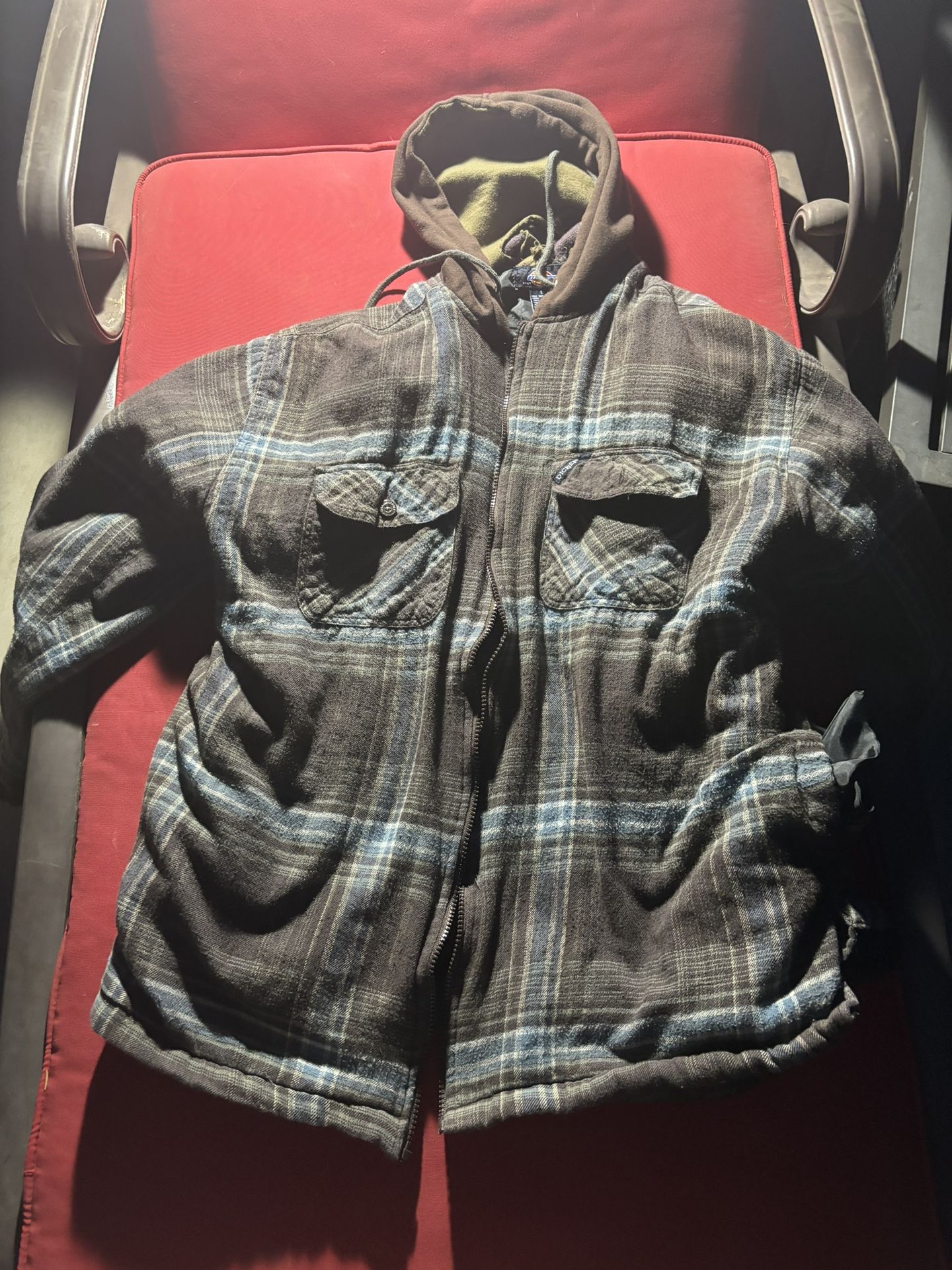 Brown and blue flannel hoodie good for cold no zipper have to add one #cozy #dickies