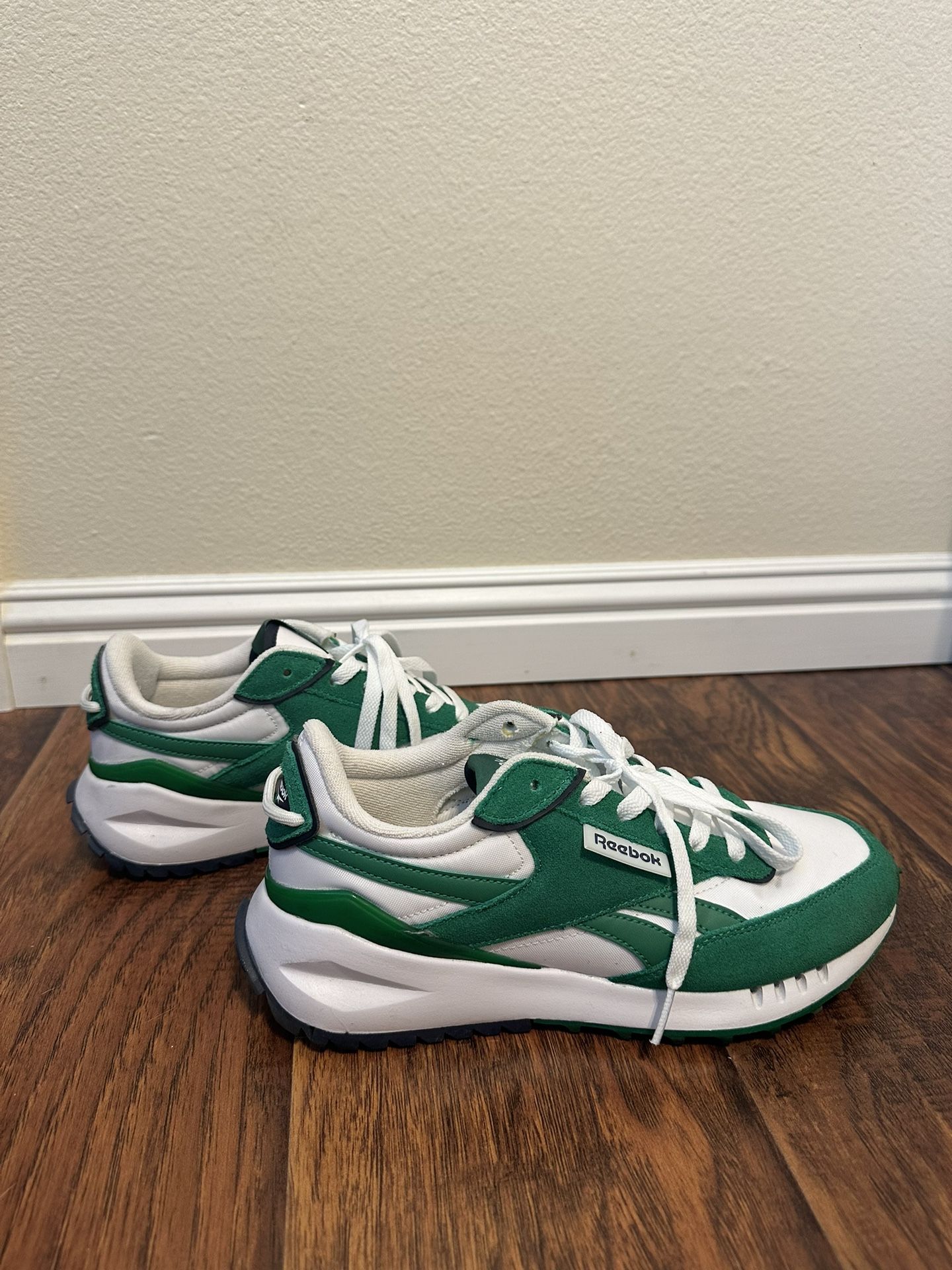 Reebok, green, worn once (I have many shoes for sale on my page, buy one get one half off lowest price, Dr. Martens excluded)