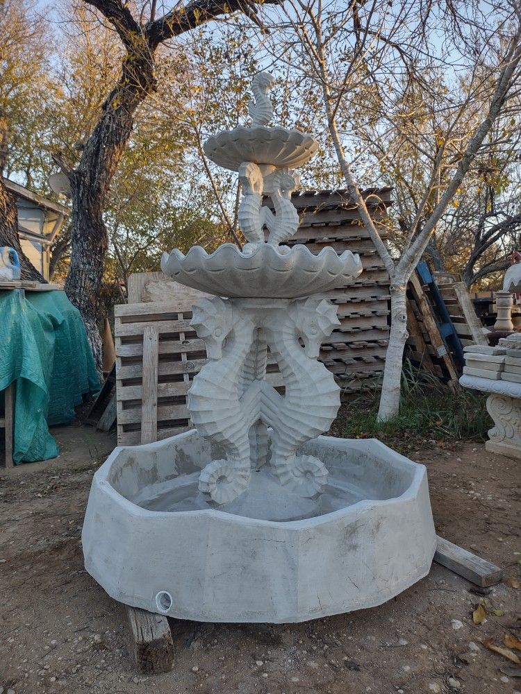 Measures 5ft 8inches tall. The pool measures 48 inches wide. Made of concrete. Delivery available pools, ponds, statuary, concrete art, birdbaths, pottery, vases, landscaping, lighting, tables, benches, appliances, decor, patio, pavers, river rock, flagstone, cement, stone, st francis, mary, guadalupe tables benches, patio furniture, arcadia, campaña, cottage, international