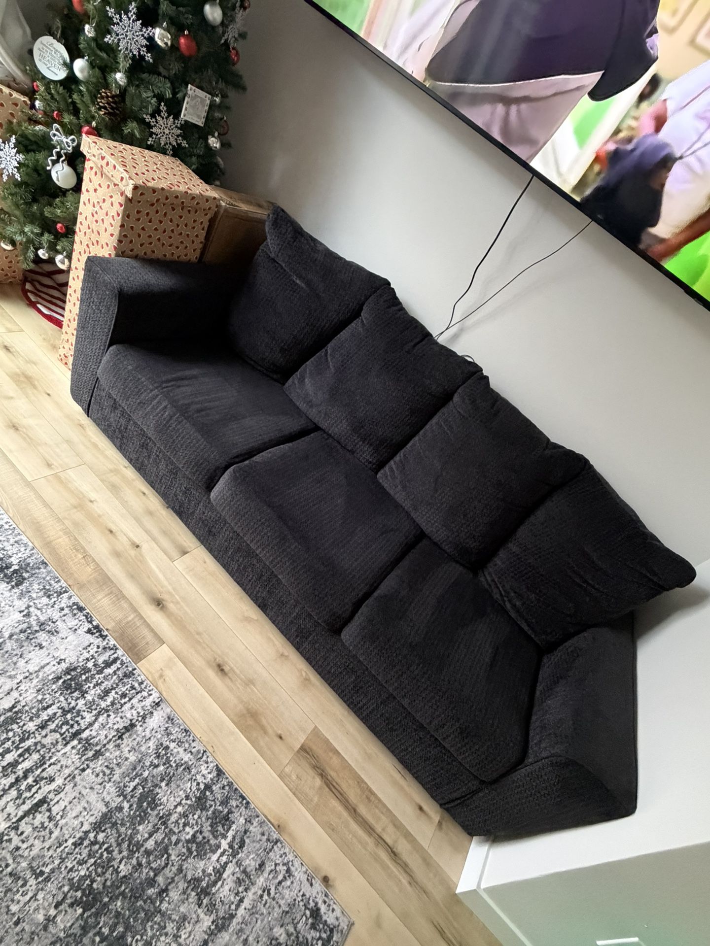 - 3 seater - Blue/ Black - Great condition, no tears or stains - Comfy and soft No smoke home* **only selling because we upgraded to a sectional Send offers!