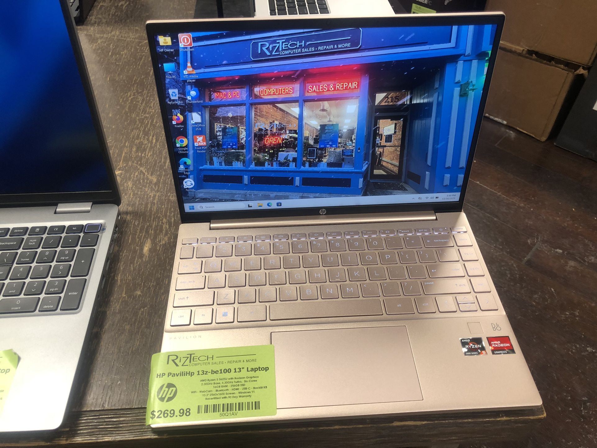 πΌ HP Pavilion 13z-be100 13" Laptop - Compact & Powerful! π» πΉ Features: - AMD Ryzen 5 5625U with Radeon Graphics - 2.30GHz Base, 4.30GHz Turbo, Six-Cores - 16GB RAM - 256GB SSD - 13.3" 2560x1600 High-Resolution Screen - WiFi - WebCam - Bluetooth - HDMI - USB-C - Backlit Keyboard - Windows 11 - Recertified with 90 Day Warranty π° Price: $269.98 π³ FINANCING AVAILABLE: - Shop without credit! - Approved for up to $4,000 - Text 31005 to 22462 to apply now! - Flexible leasing options through Acima Leasing Perfect for students, professionals, and anyone needing portable performance with a stunning display! π Contact RizTech Computer Sales for more info