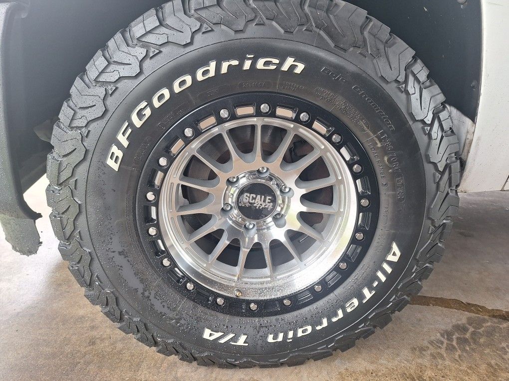 New wheels used tires in great cond. 285 70 17 bf goodrich