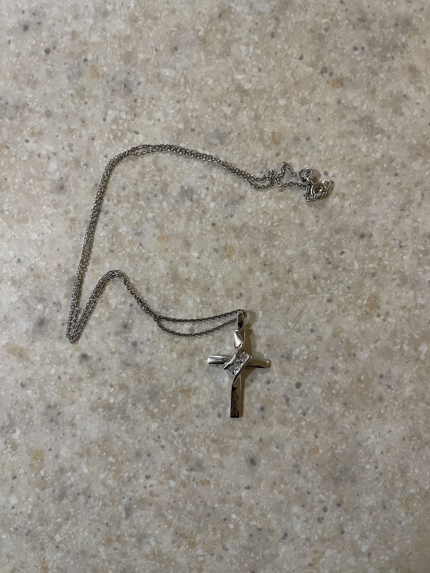 Sterling silver 1/10 CT TW diamond cross pendant necklace. New. $65 OBO