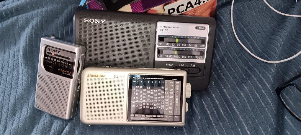 Sony ICF-38 2BAND RADIO.. Sangean SG622.. Sony ICF-S10MK2.. All work good as they should.. Sangean is a 12 band portable receiver.. Asking $150 for all 3..