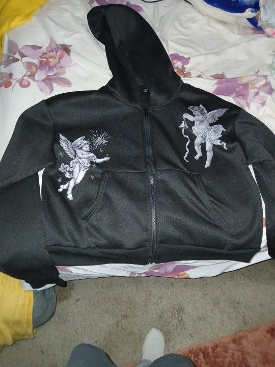 Street Life Men's Street Fashion Angel Graphic Zip-Up Hoodie Sweatshirt, Fall/Winter, Long Sleeve Top