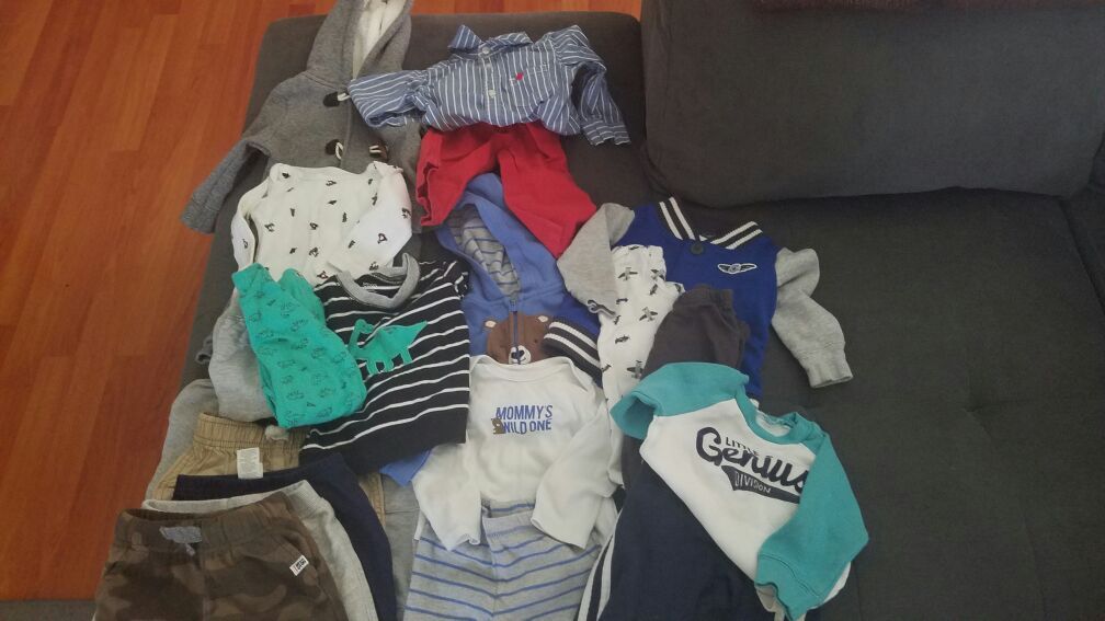 All in excellent condition! 6 complete outfits and 5 pairs of pants Carter's and Children's Place Sizes 6-9 mo. *PICK-UP IN MIRAMAR*