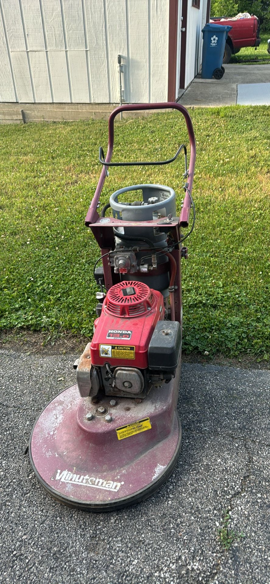 Minuteman® Propane Burnisher .for pars or fixing . Used. Currently non running, I can’t get it to start since I don’t know anything about his type of machines, I know some will be able to get it going, first come first served, Hablo Español. Thanks.