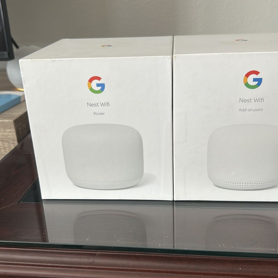 Nest Wifi Router and Add-on point Blanket your home up to 2200 square feet plus 1600 square feet with the Nest Wifi point $100 for both there are almost brand new