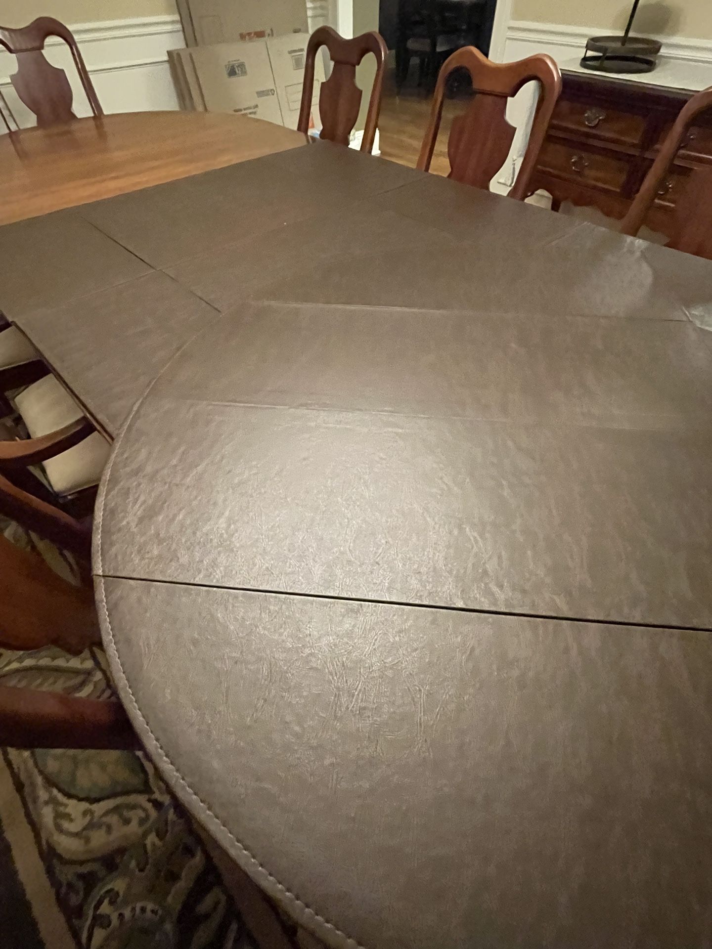 Oval table (60 inches -102 inches)…two leaves and pads…44” wide 8 chairs (3 armchairs/ 5 without) Sideboard 63”x20”x33” China Hutch 62”x19”x80”