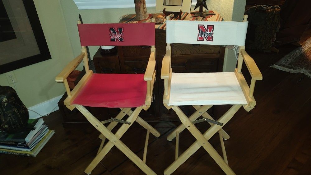 Pair of Nebraska "Huskers" Tall Director's Chairs Seat 24"H x 17"W x 15"D. Back 39"H