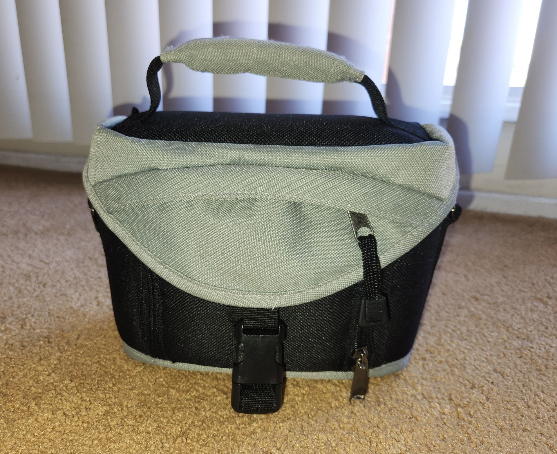 Medium sized padded camera bag with dividers and straps no rips or stains. Has 4 pockets and 2 of the pockets have mesh pouches, if interested ask about the dimensions of the bag.