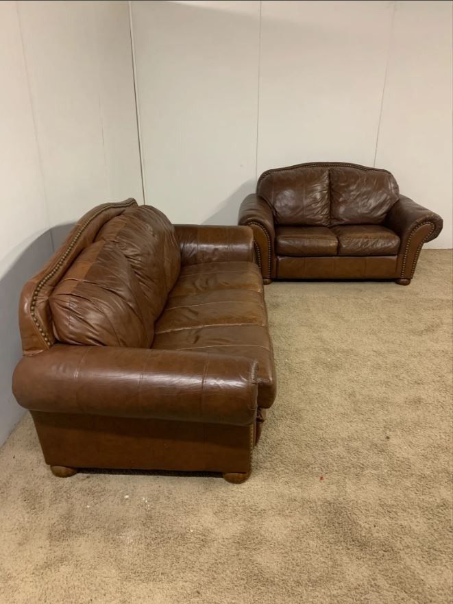 "Order and schedule your delivery at OneUpFurniture(DOT)com Over 50 sets to choose from We are trusted and have 100+ reviews on Google. Excellent overall condition No rips tears or stains Pillows are all attached Very comfortable Measurements: Couch: 90” Loveseat: 69” Height: 38” Depth: 37”