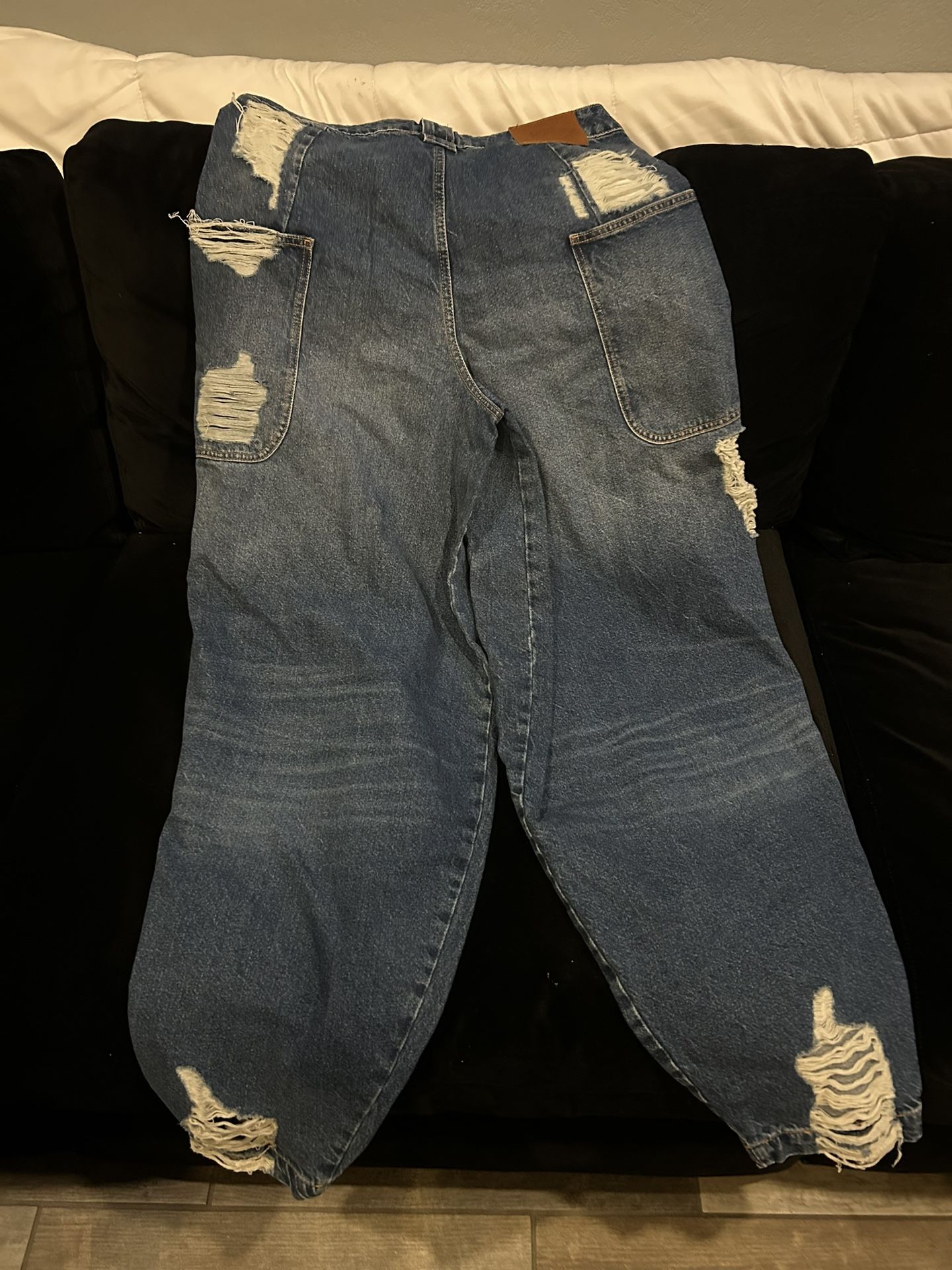 Telfar Baggy Jeans -distressed Blue In Size 34
