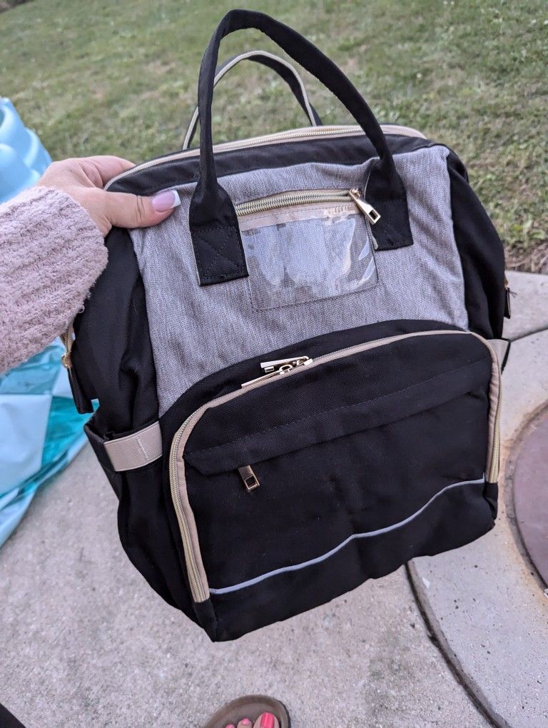 Opened and used once. I had too many diaper bags this one wasn't given any love. It has a lot of pockets, storage and a nice cozy built in bassinet. $15 pick up in berwyn