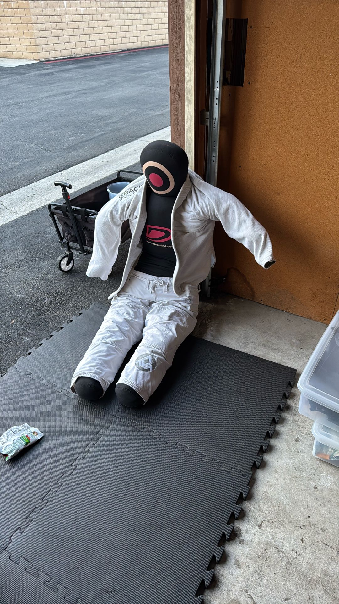Life size jiu jitsu training partner dummy. Helps practice moves at home. Included: size A2 Gracie Jiu jitsu Gi and Gracie bag. Normal wear and tear. $50 - OBO