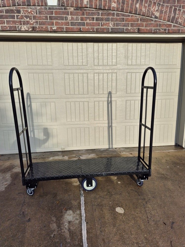 U BOAT COMMERCIAL SOLID STEEL BLACK DIAMOND PLATFORM ROLLING PUSH CARTS REMOVABLE HAND RAILS 8 AVAILABLE $160.00EA ZELLE OR CASH