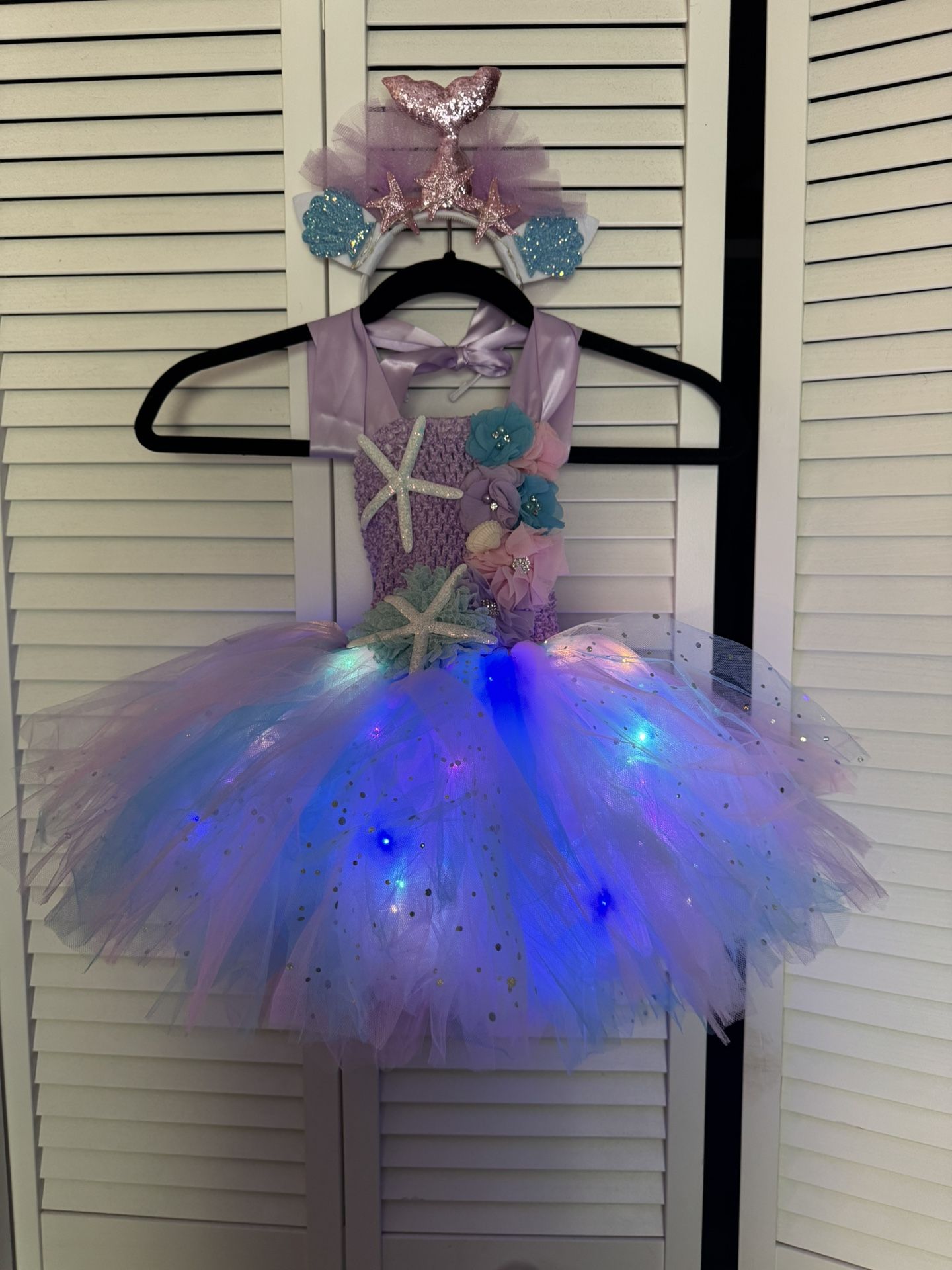 Size small girls mermaid costume. Light-up headband and dress. Perfect for Halloween or your next photo shoot.