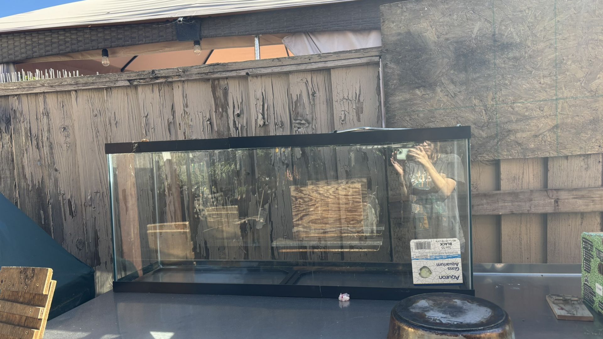 55 gallon fish tank Length - 48 1/4 inches Width - 12 3/4 inches Height - 21 inches Used for about a week and cleaned after Willing to negotiate Has two cracks on the black barrier