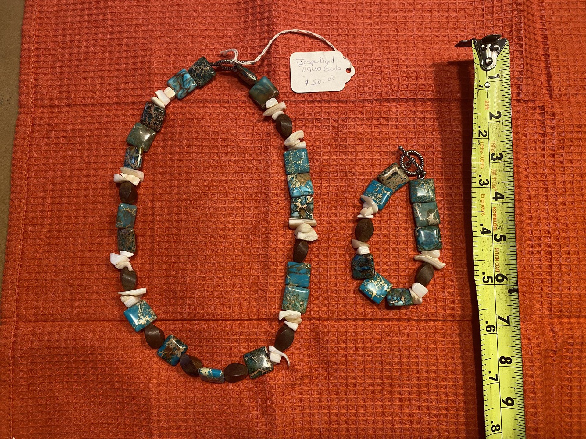 Jasper dyed Aqua Beaded Necklace And Bracelet (one of a kind)