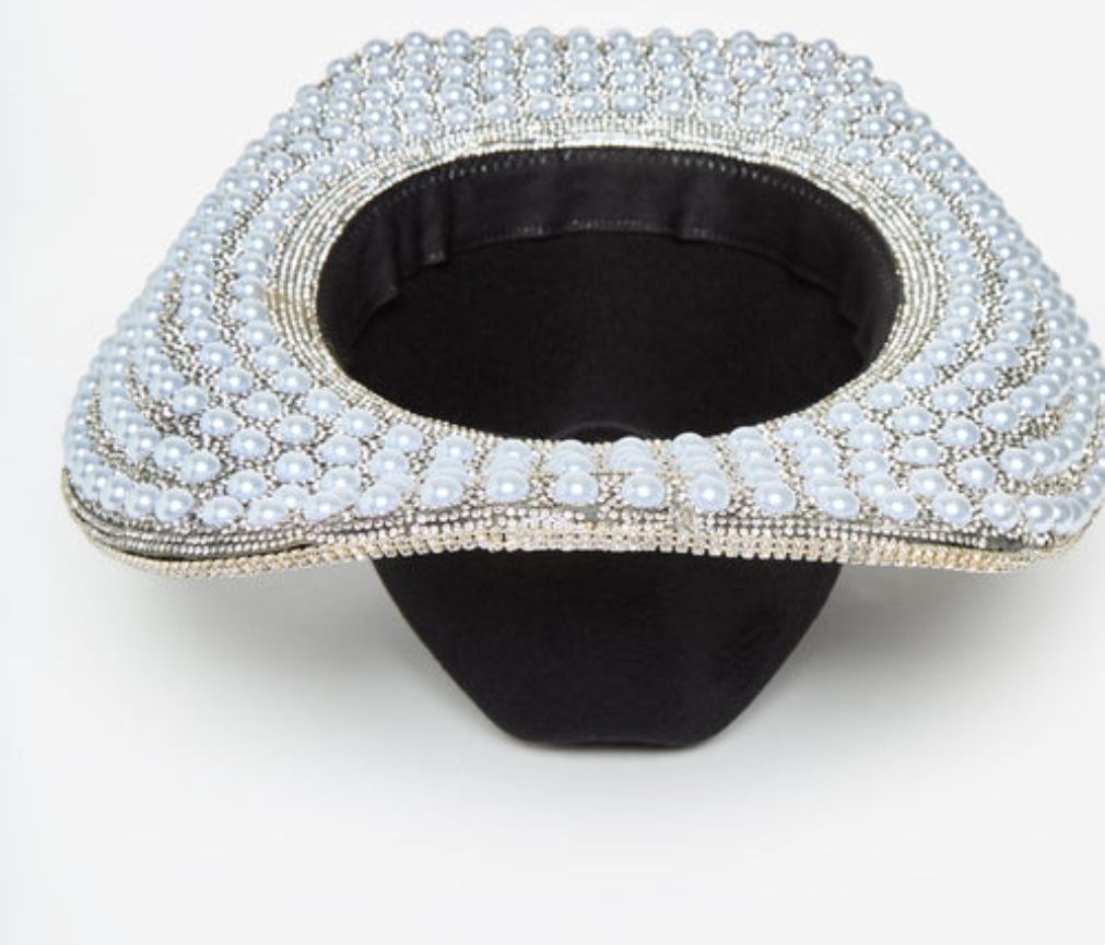 Black Faux pearls and Crystal decor on the under rim only 22.5 approx inches