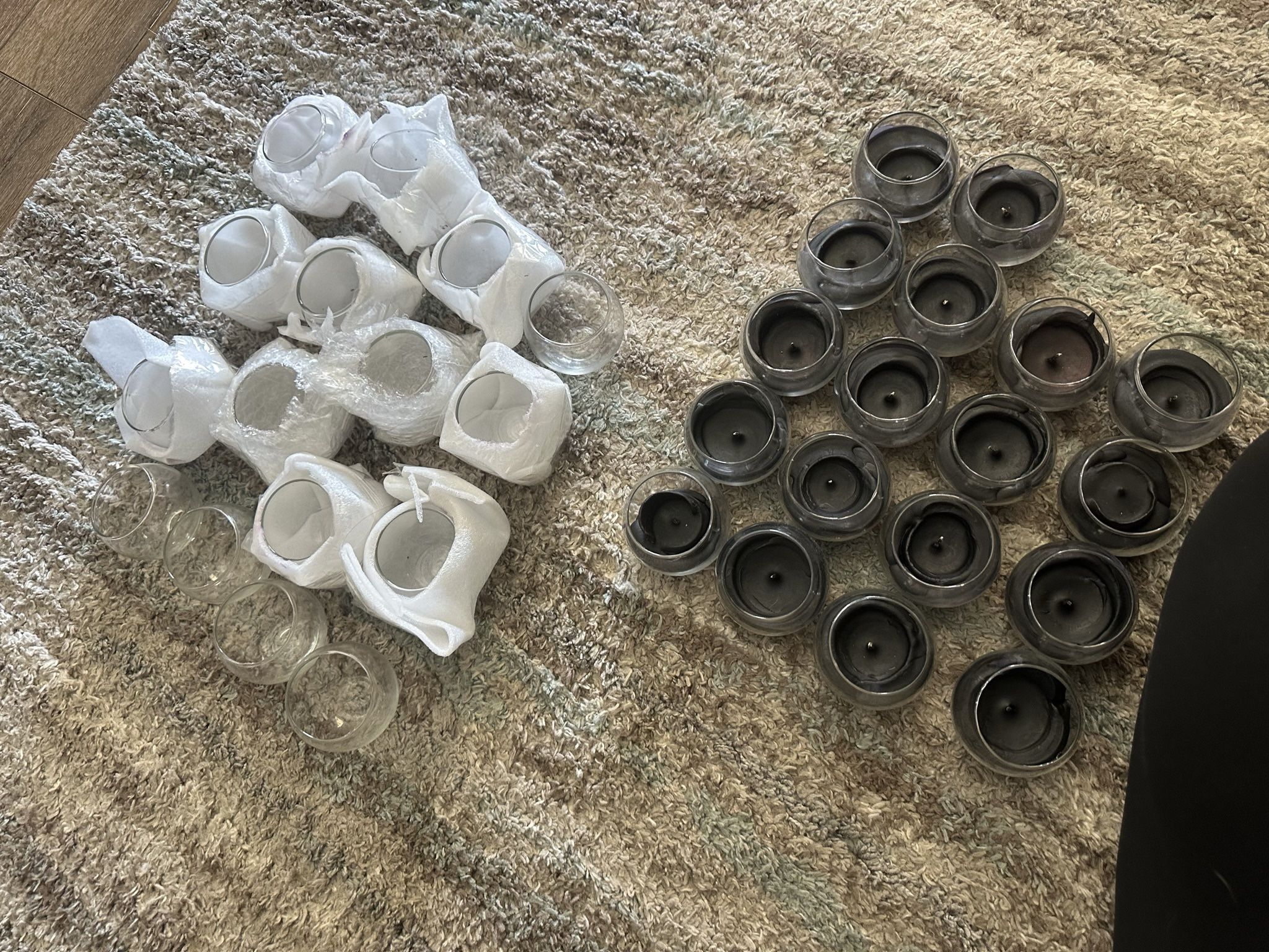 18 used candle holders candles can be removed and 16 unused candle holders willing to separate used and new if needed