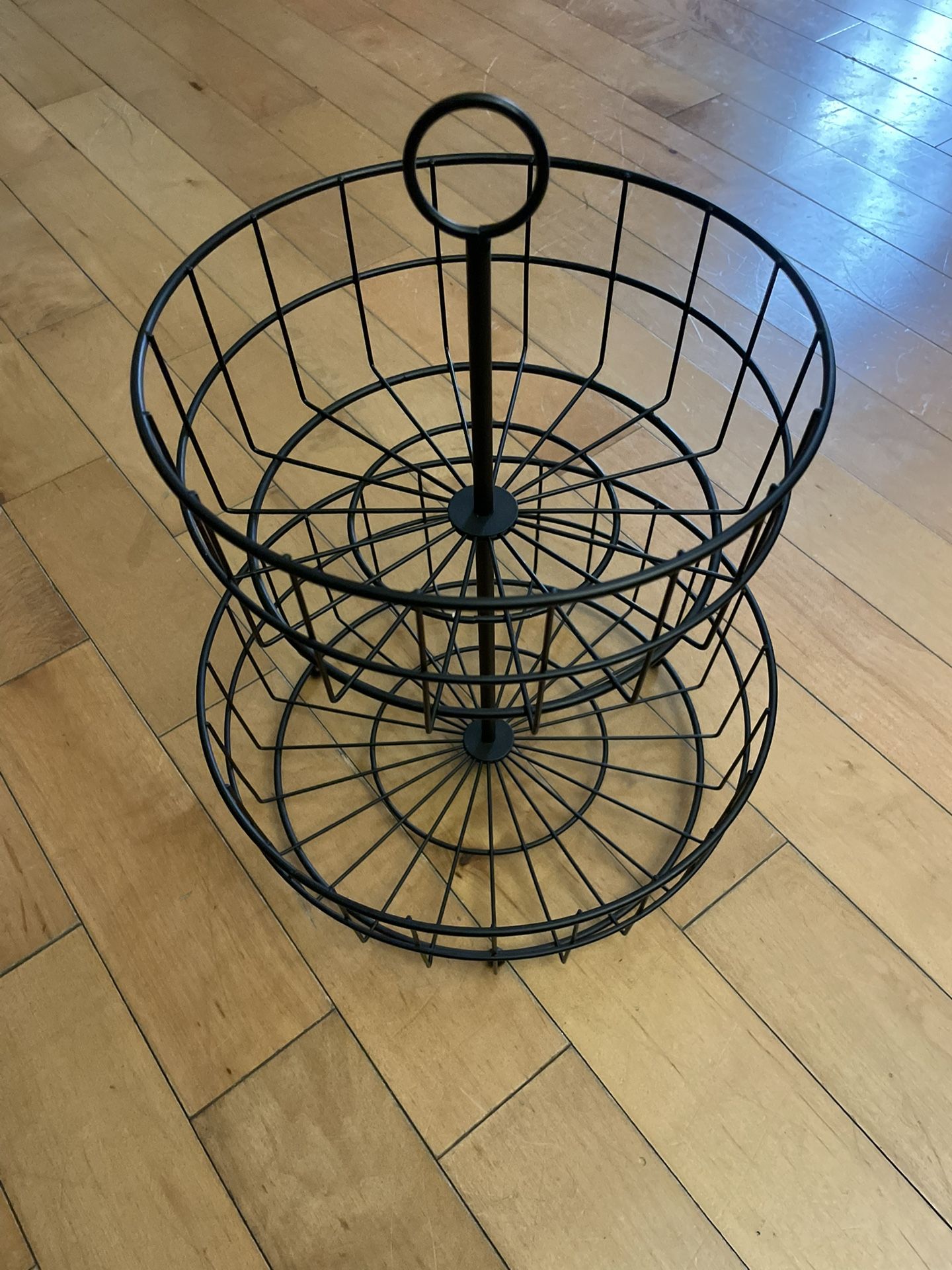 Black wire two-tier basket for storage or display. Cash only. It’s available.
