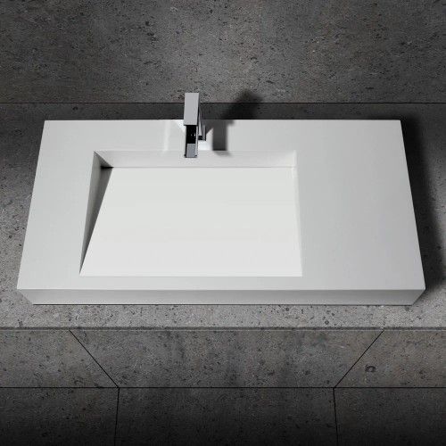 40" Wall-Hung Stone Resin Rectangle Bathroom Ramped Sink in Matte White