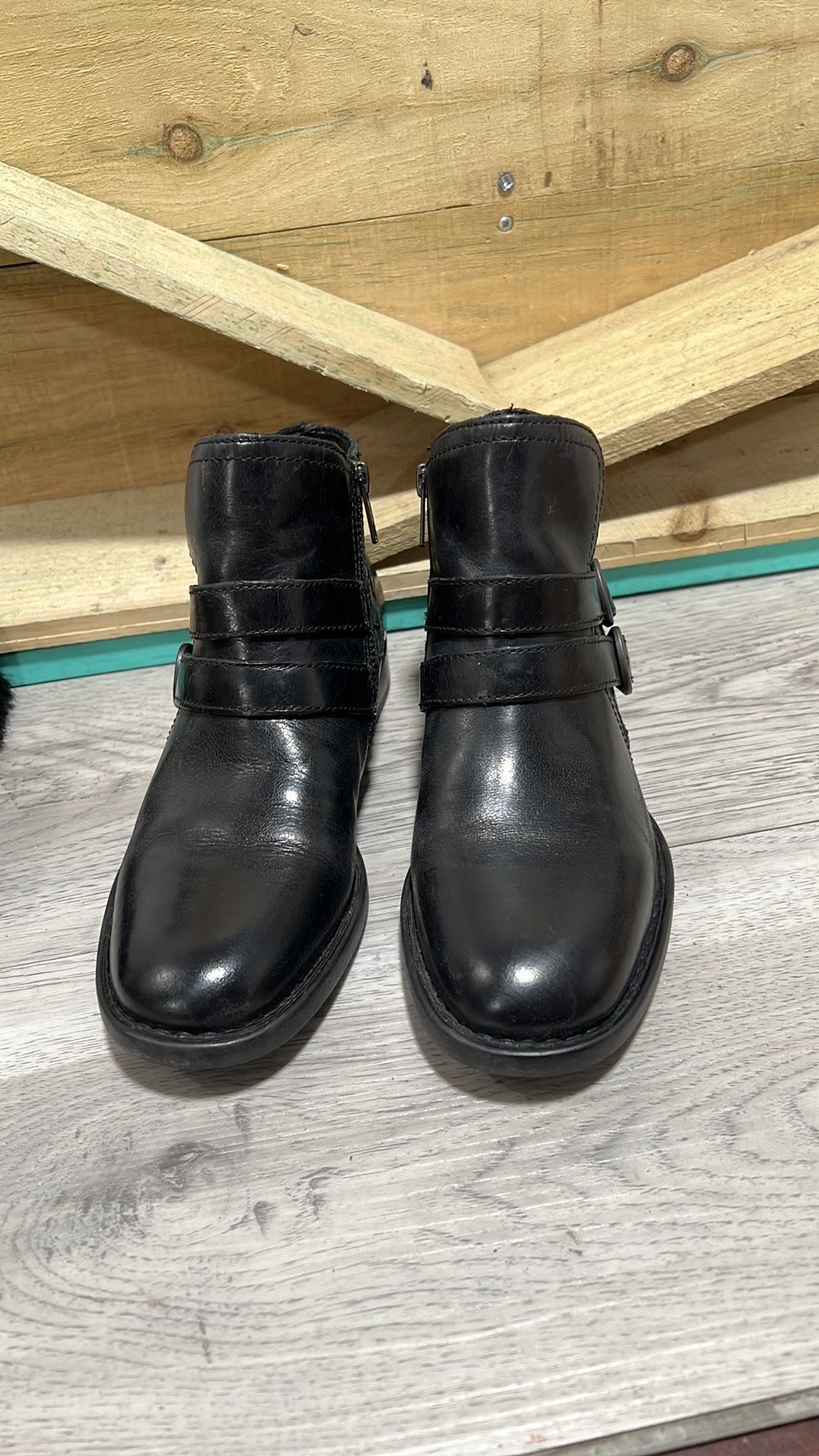 BORN Womens 6.5 M Pirlo Ankle Booties Black Leather Buckle D76103 Boots