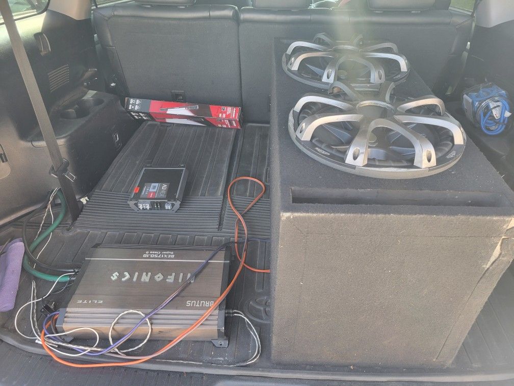 UNAS BOCINAS KICKER CVX SIZA 12 DE 1500WATTS DUAL VOICE COIL CON SU CAJA PORT BOX CON UN AMPLIFIER HIFONICS BRUTUS BEX1750 WATTS MONOBLOCK CLASS D TODO BARATO PERSONAS SERIAS OK GRASIAS π