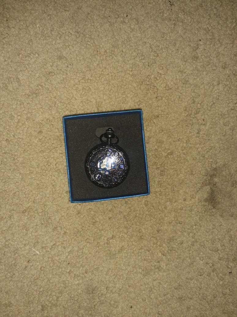 Watch is silver and blue and still in original box and has never been used.Would make a great gift