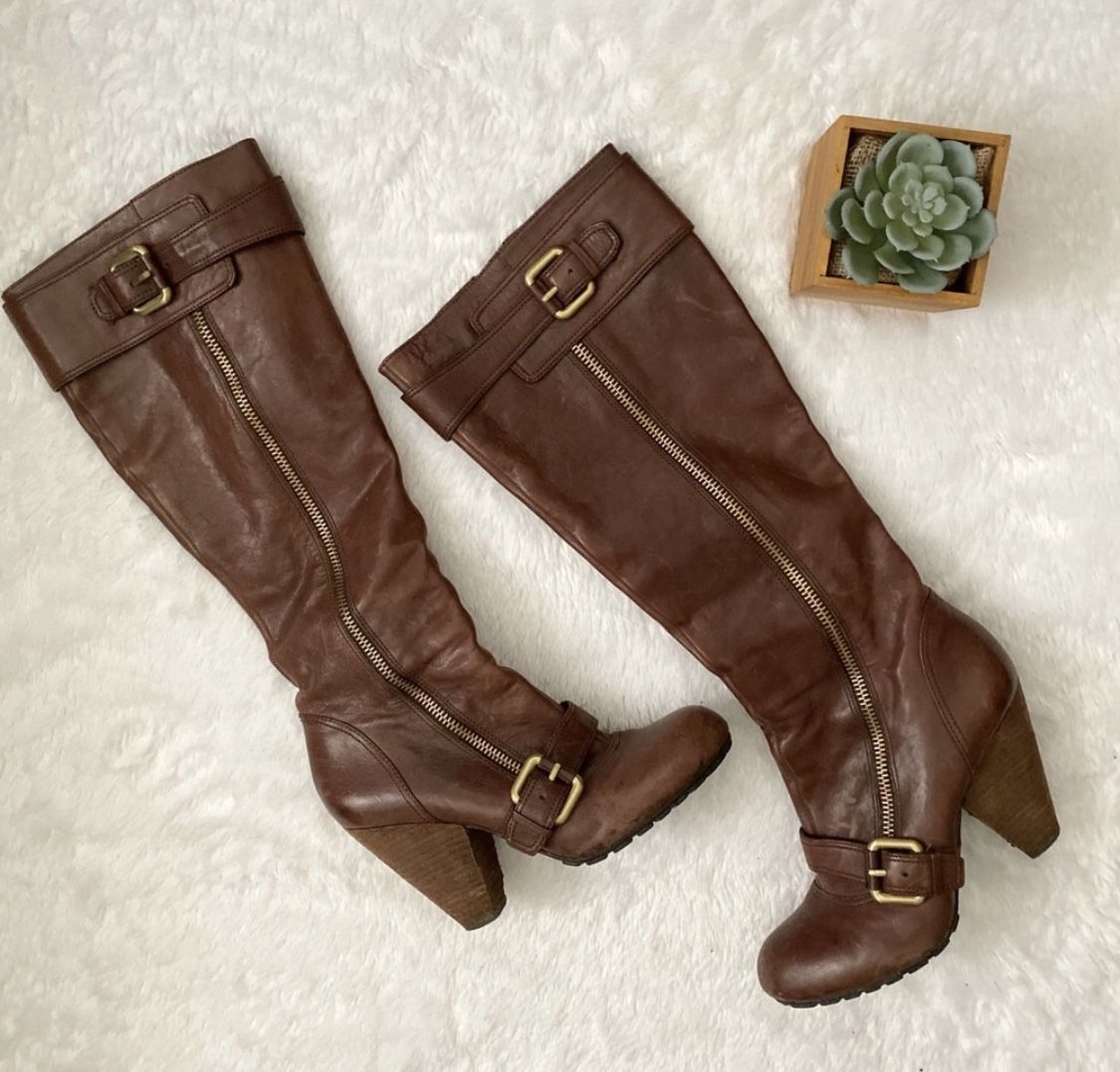 ⭐️Used, but good condition - only thing is left foot zipper is broken, but I’m sure it can be replaced/fixed ⭐️Great quality leather - so soft ⭐️Very comfortable because of the rubber sole