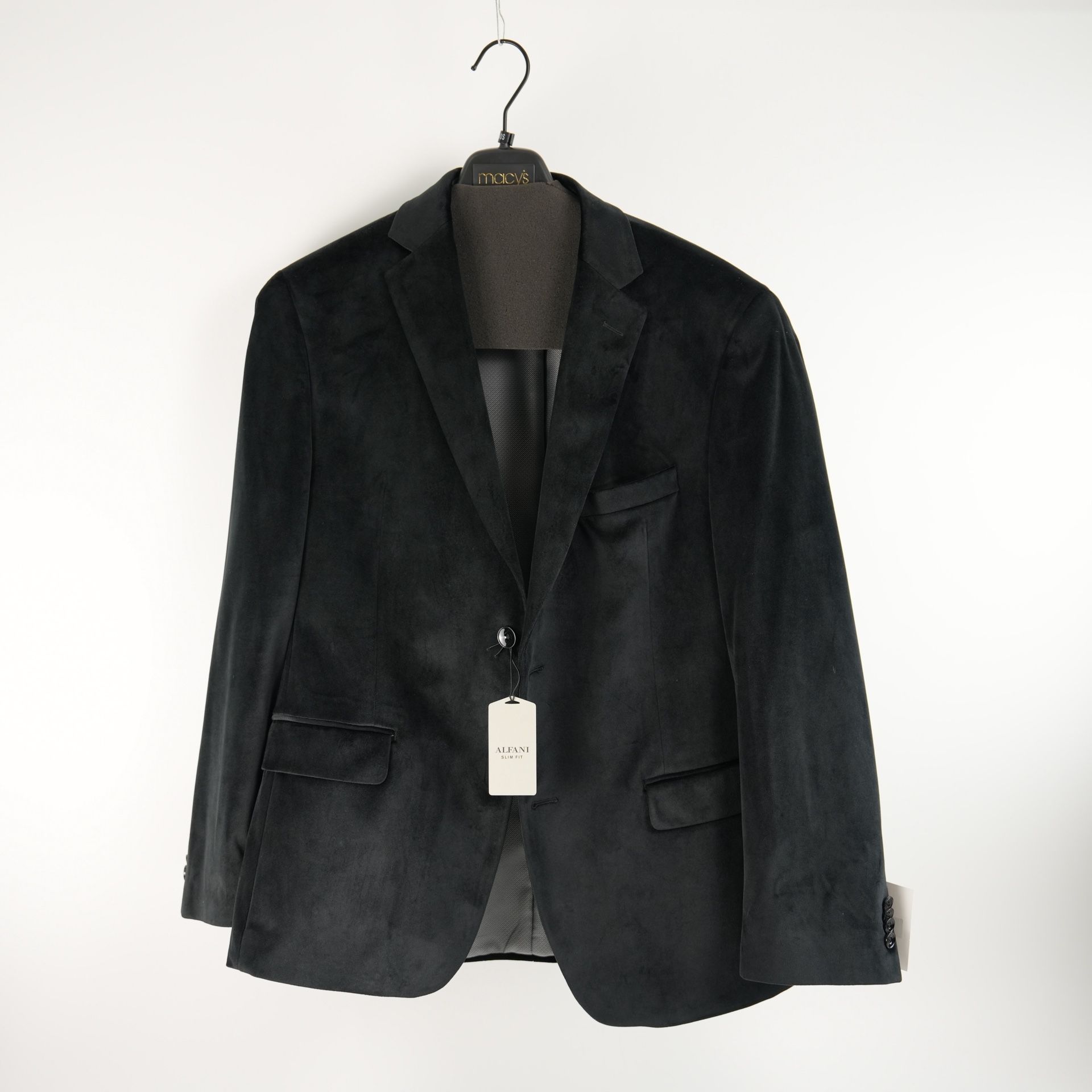 Condition: Brand New Warranty: No warranty is provided by the seller. Manufacturer warranty may or may not still be valid; this cannot be guaranteed. Brand: Alfani Model/Style: Slim Fit Velvet Sport Coat Material/Fabric: Velvet Color: Black Size (Tagged): 40S Fit: Slim Fit Closure: Two-Button Front Pockets: Chest pocket, two front flap pockets, interior pockets Features: Velvet finish, fully lined, Macy’s exclusive Perfect for: Formal events, weddings, parties, evening wear