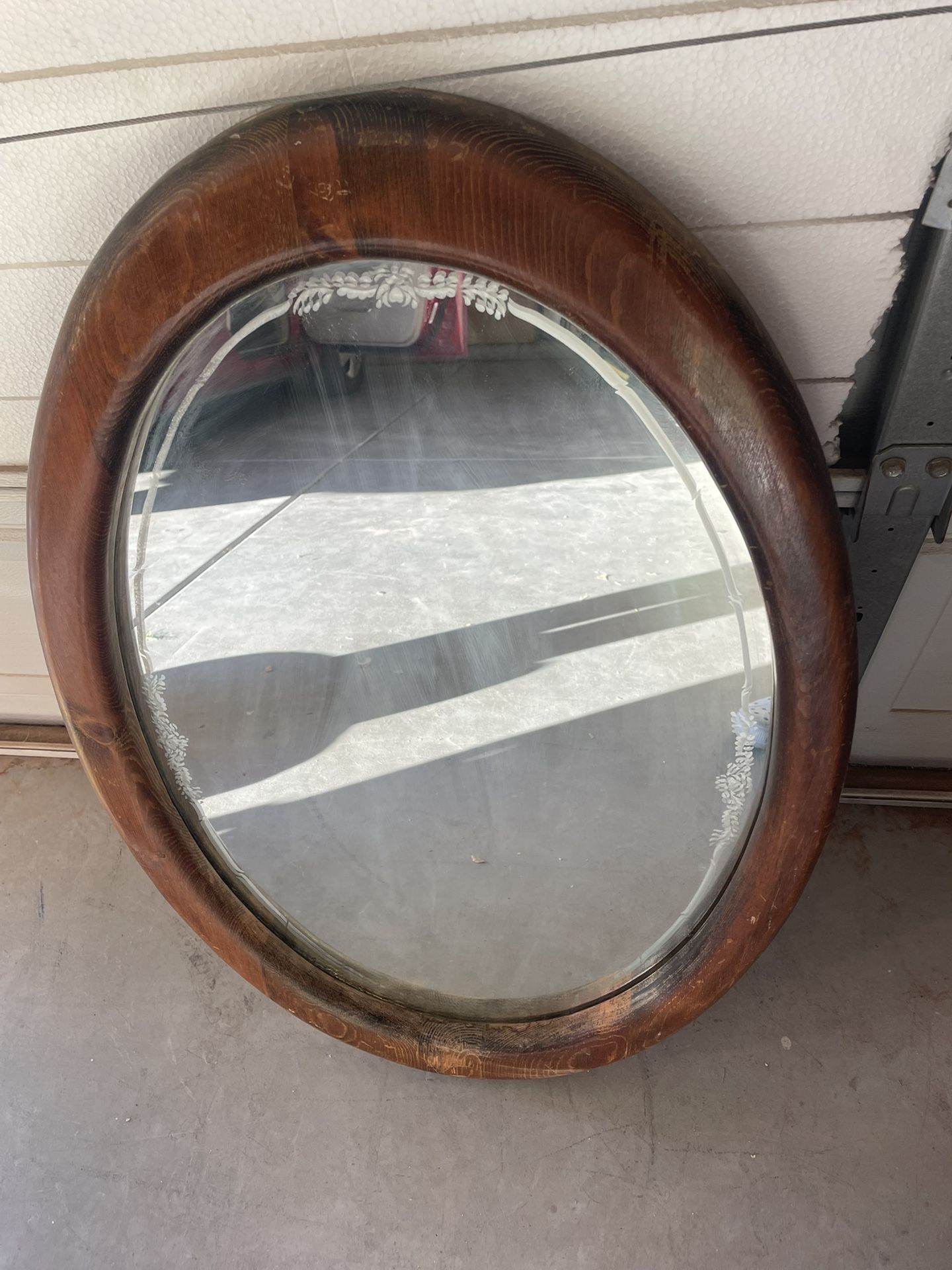 Antique Oval Wood-frame Mirror Some wear from age. Measurements in photos. Pick up near schnepf and ocotillo in San tan valley
