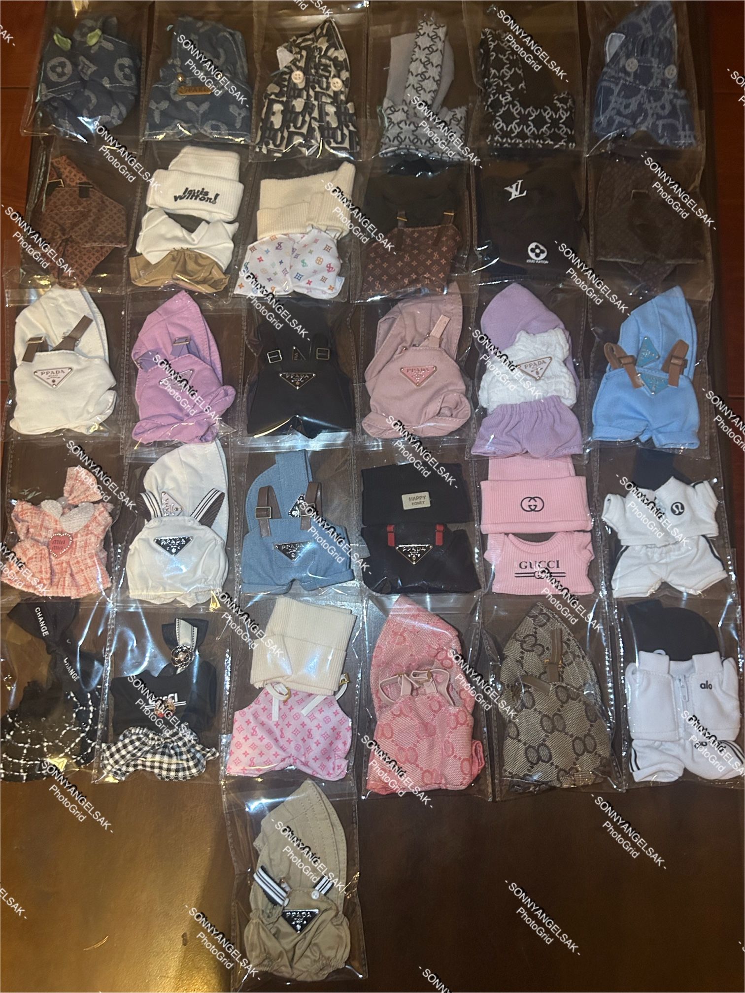 Regular Shoes: $7 Designer Shoes: $10 Regular Clothes Sets: $12 Designer Clothes Sets: $15 Fits every labubu💕 I sell authentic labubus too🫶 Shipping also offered. Perfect for collectors or as a cute gift. Message me for details.💖