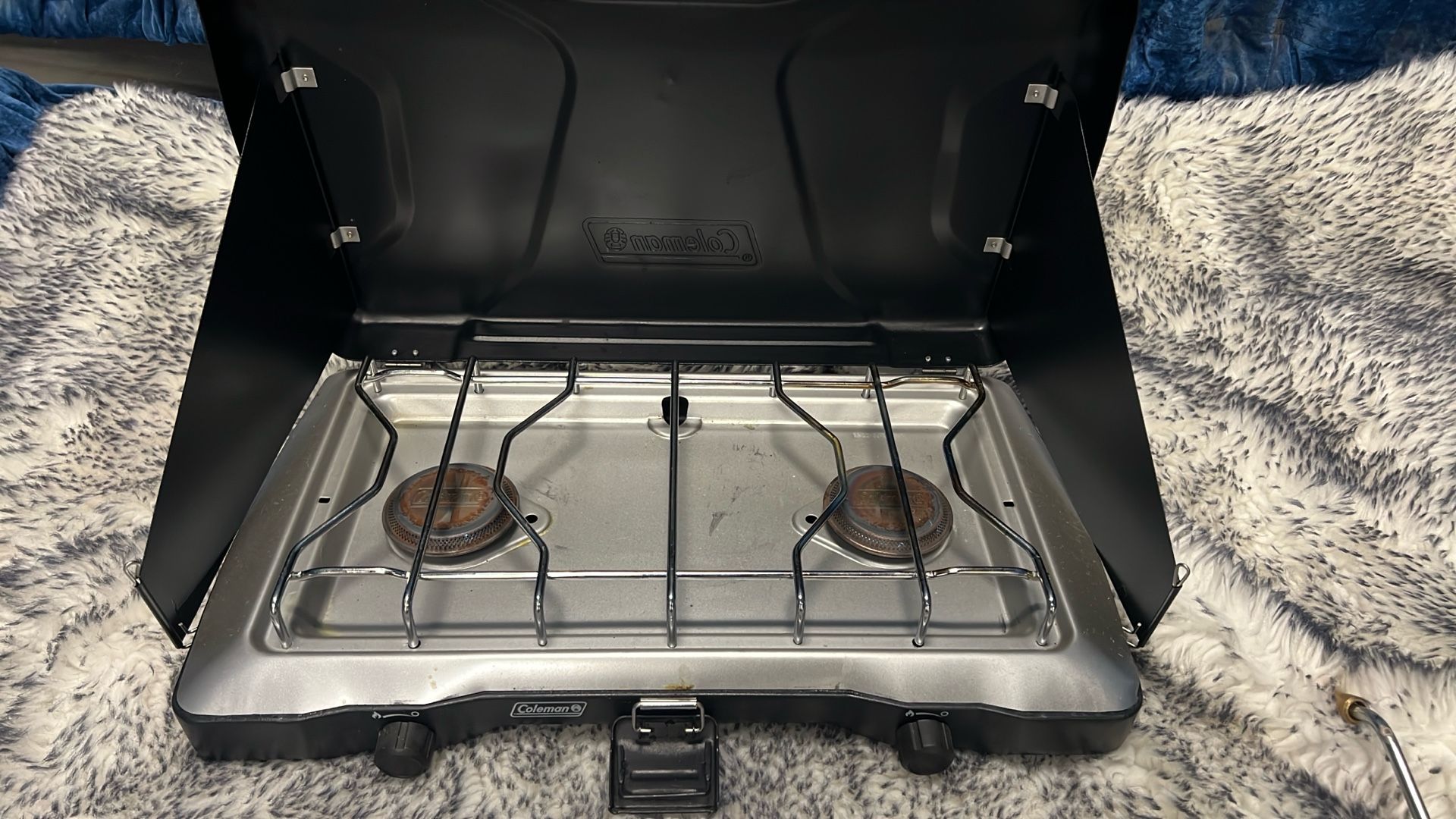 Hardly used, works great please refer to photos. Retails $120 All offers considered From the website: Hit the road with a Triton™ 2-Burner Propane Gas Camping Stove, which makes it easy to cook great meals outdoors. It's portable so you can cook up at the campsite or elevate your next picnic. Bonus? Its durable, chrome-plated grate is removable for easy cleanup. PORTABLE: Easy addition to the campsite, picnic, roadside, and more TWO WIND GUARDS: Help shield and protect burners from wind HEAVY-DUTY LATCH: Easy to open and keeps the stove closed when not in use EASY TO CLEAN: Durable, chrome-plated grate is removable for easy cleanup IMPROVED KNOB ROTATION: For precise temperature and simmering control of two independently adjustable burners POWERFUL STOVE: 22,000 total BTUs of cooking power SIZE: Fits 12-inch and 10-inch pan BURN TIME: Up to 1 hour on high on one 16 oz. propane cylinder (sold separately)