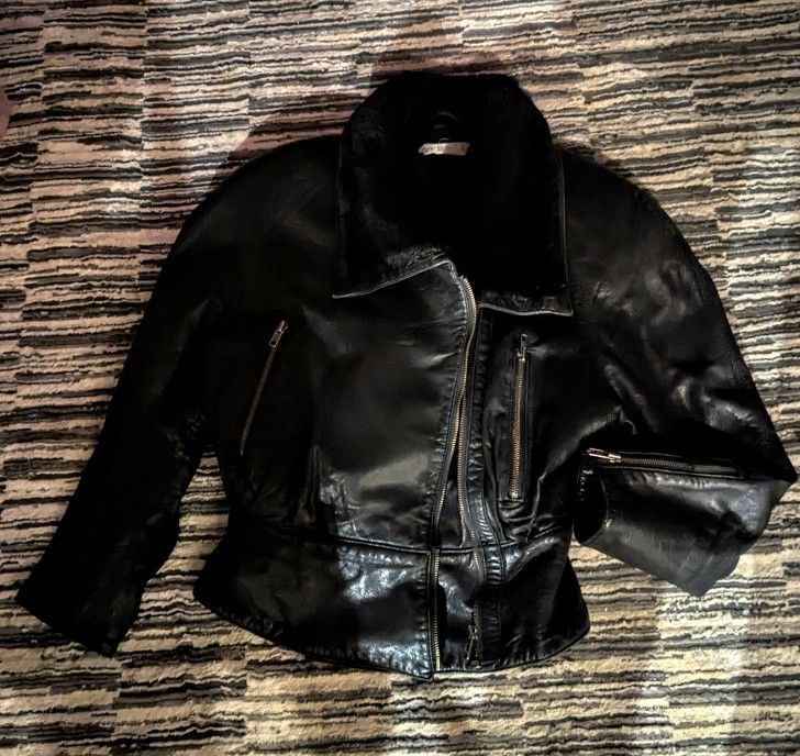 Andrew Mark designer fully fur lined leather motorcycle jacket Originally sold for 450