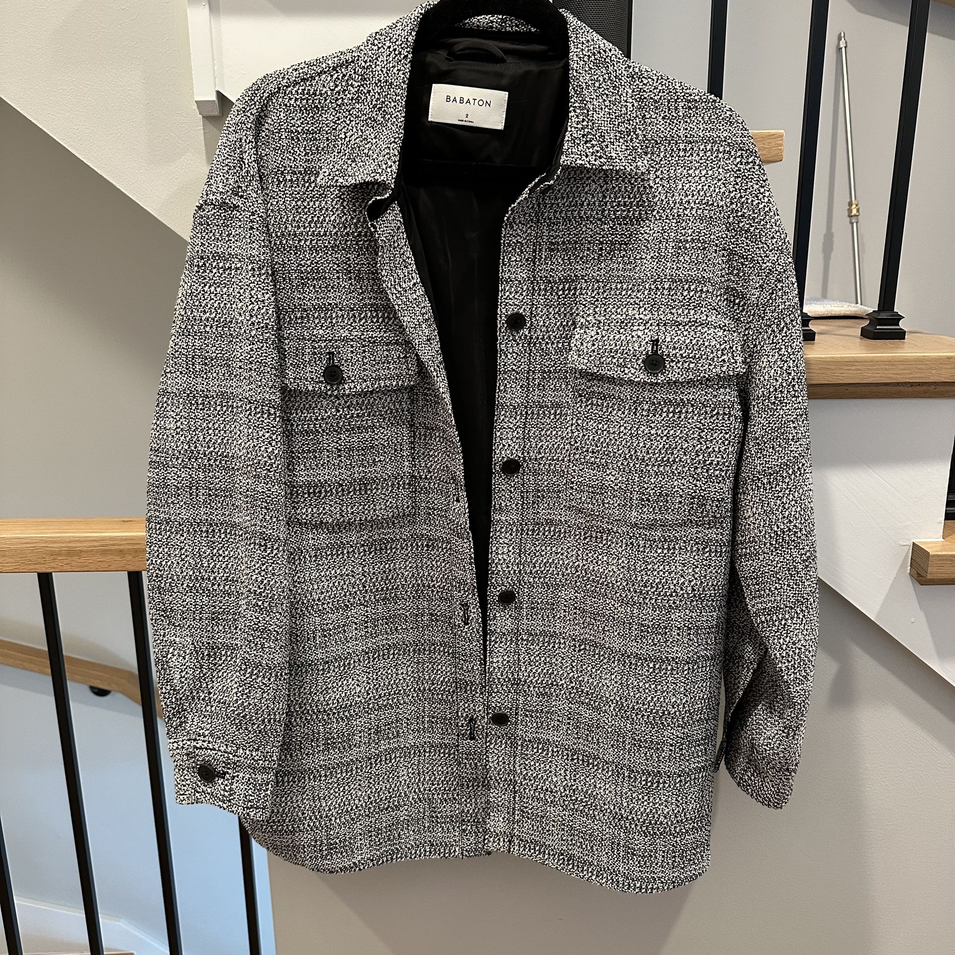 BNWT Aritzia Babaton Joan Shirt Tweed Jacket size 2 in Solange Mlg Black/White. Fits like M. Retails $200. Comes with original tags & spare button. Local pickup in Bridgeport, Chicago, IL. Oversized linen tweed shacket The shirt & jacket lovechild This is a fully lined, oversized shirt jacket with dropped shoulders & patch pockets. It’s made with textural linen tweed. Fit: Oversized — An intentionally loose fit with extra volume Length: Below Bum — Intended to hit below the bum Model is 5'9"/175.25cm wearing a size 2 On average, customers say it fits slightly larger Comes from a smoke-free home. All sales final; no returns.
