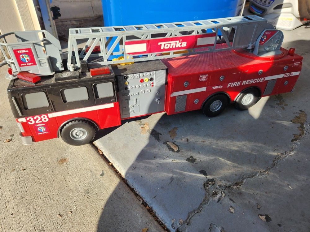 Large vintage latter fire truck. Lights up and makes noise. Almost 30 inches long