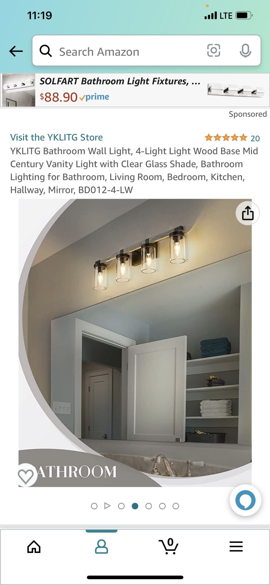 YKLITG Bathroom Wall Light, 4-Light Light Wood Base Mid Century Vanity Light with Clear Glass Shade, Bathroom Lighting for Bathroom, Living Room, Bedroom, Kitchen, Hallway, Mirror, BD012-4-LW