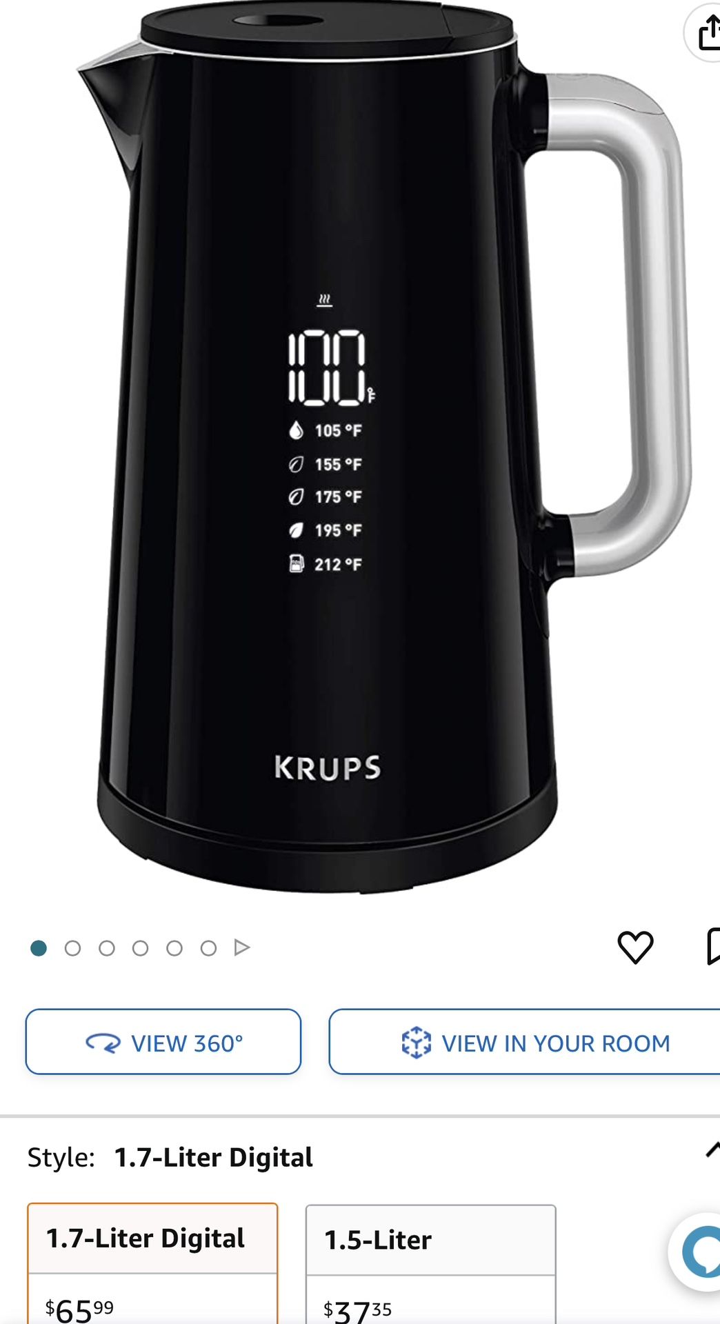 KRUPS BW801852 Smart Temp Digital Kettle: Prepare tea and coffee. Full Stainless Interior and Safety Off, 1.7-Liter, Black