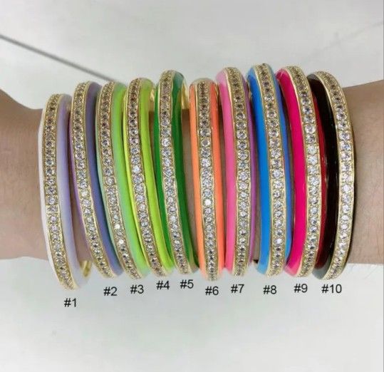 Fashion Micro Pave CZ Enamel Neon Multicolor Cuff Bangle $25 each
