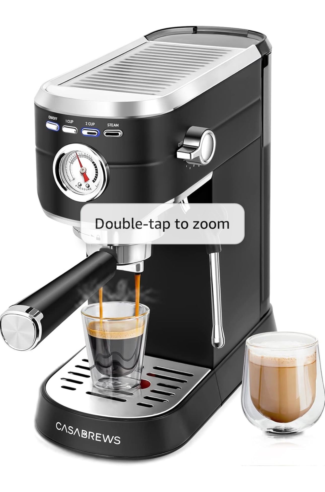 CASABREWS Espresso Machine 20 Bar, Stainless Steel Espresso Maker with Milk Frother Steam Wand, Compact Cappuccino Machine for Home, Espresso Coffee Machine with Removable Water Tank, Black