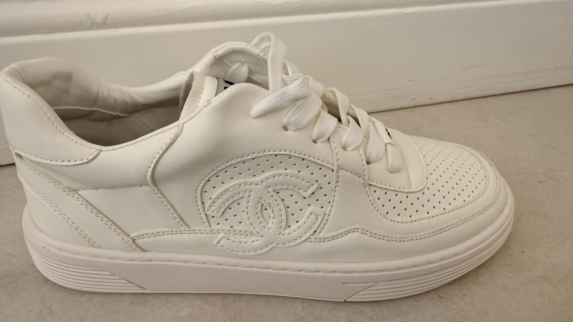 White Designer-Inspired Sneakers Size: EU 40 Beautiful sneakers inspired by Chanel style Elegant, minimal, and perfect for everyday wear. ✔️ Amazing quality ✔️ Comfortable & stylish ✔️ Easy to match with any outfit They give that luxury look without the luxury price Message me if interested