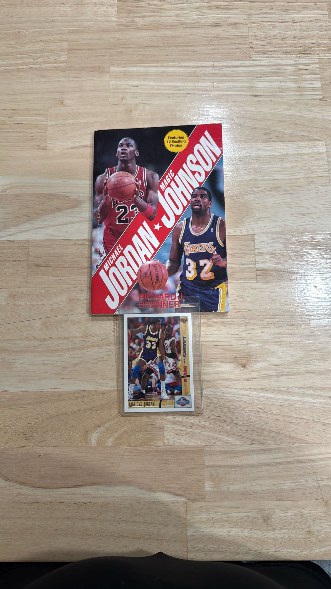 Michael Jordan VS. Magic Johnson Book and 91/92 Upper deck Basketball Card