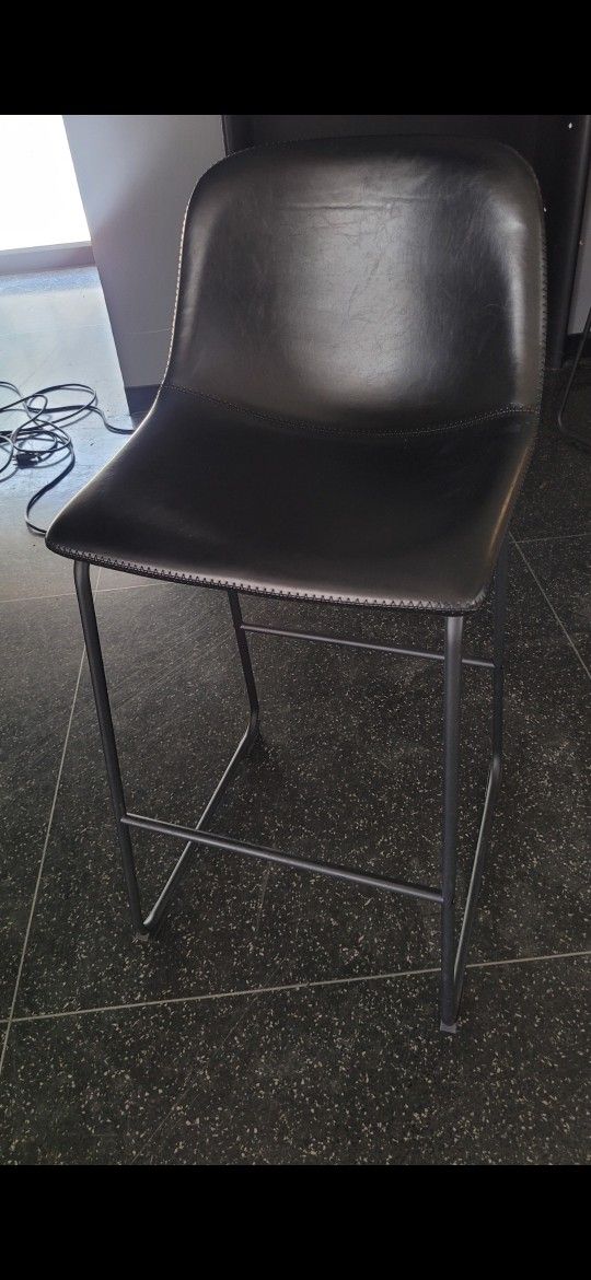If this ad is up, they are available. We have about 25 bar height black faux leather chairs left. Pick up or delivery with fee. $25 each. Dimensions are in photos. Used but is great condition.