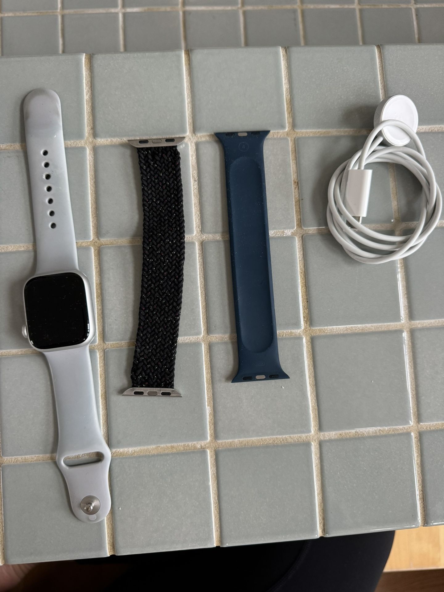 Apple Watch Series 8 used for a few years. Still works great!! Comes with 3 bands and a USBC charger. Scratches on the front glass.