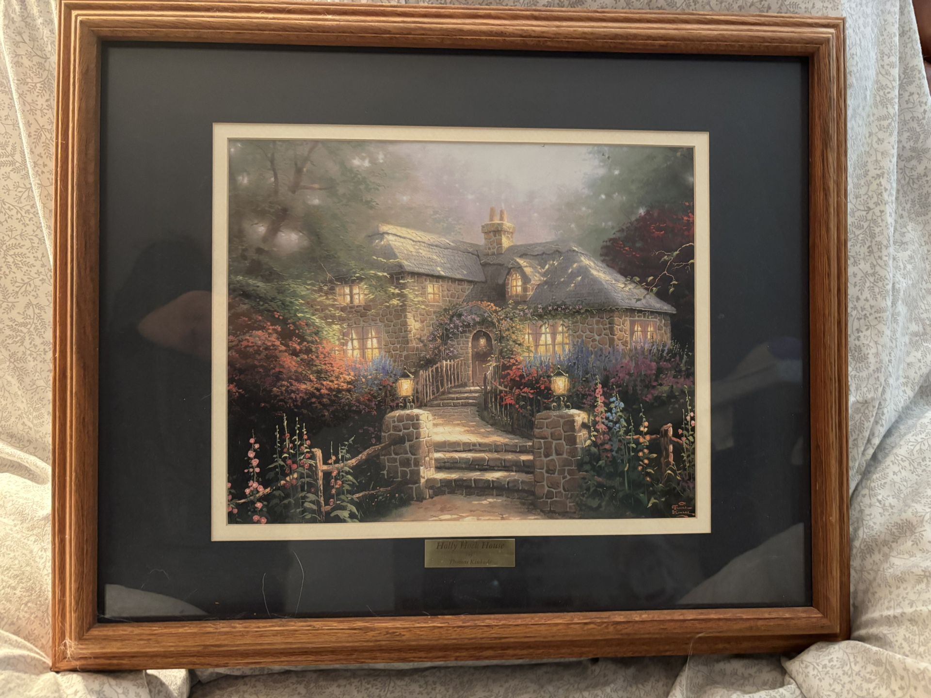 Framed Thomas Kinkade Print Title: Holly Hock House Wood Oak Frame Approx 28”x 18” Very good condition. You will need to add hangers on back. Pick up in Lake Balboa/ W Van Nuys 91406 Do Not reply unless you are serious please. Thank you Cash only $35 firm price already lowered