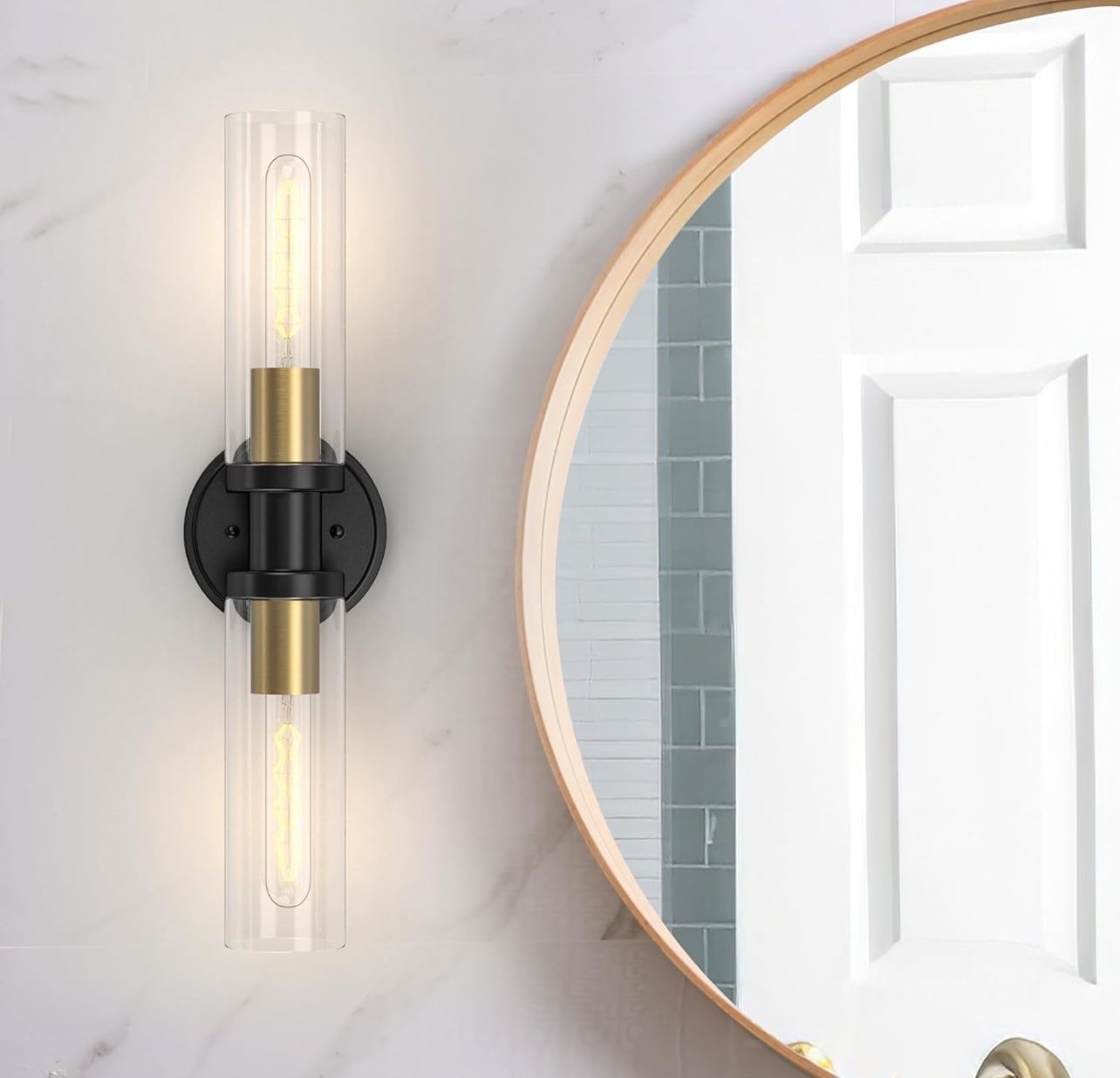 Espird Bathroom Light Fixtures 2-Light Black & Gold, Bathroom Vanity Lights Over Mirror, Wall Sconces, Industrial Bathroom Lighting, Modern Brushed Br